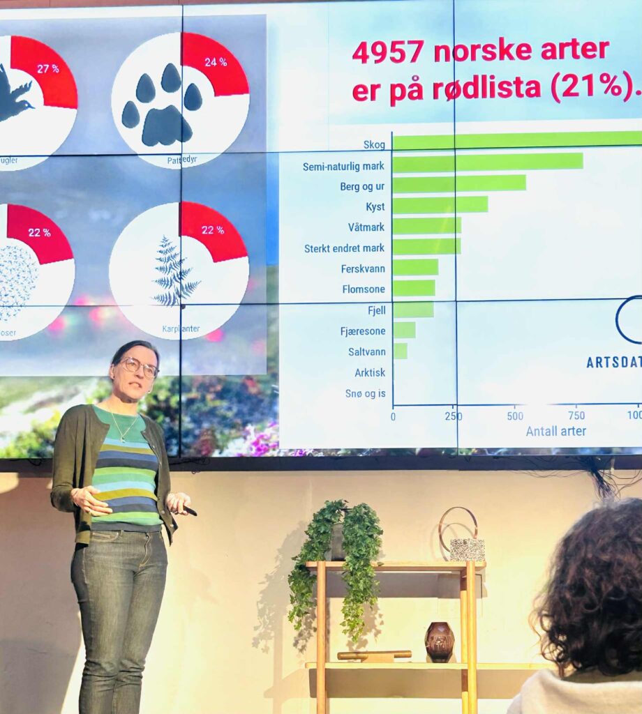 Samtidig minnet Vandvik om at norsk natur under press: Rundt 5000 arter står på rødlista, og arealbruk og arealendringer er den største trusselen. Selv om utbygging er den mest synlige påvirkningen, er også skogbruk en betydelig faktor – særlig for arter knyttet til gammel skog og død ved.